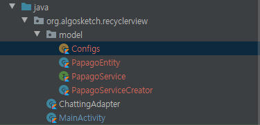 PapagoEntity : 서버로부터 전송받을 데이터의 형식을 정의한 Entity 클래스