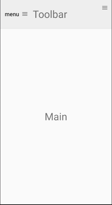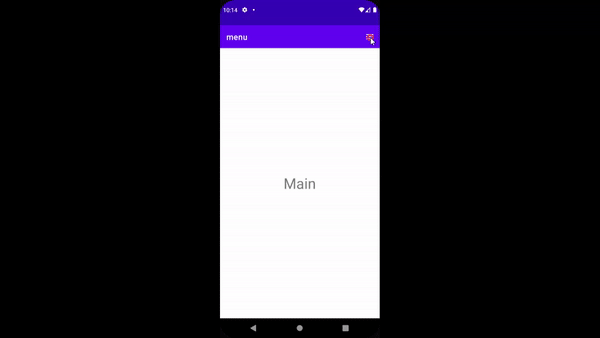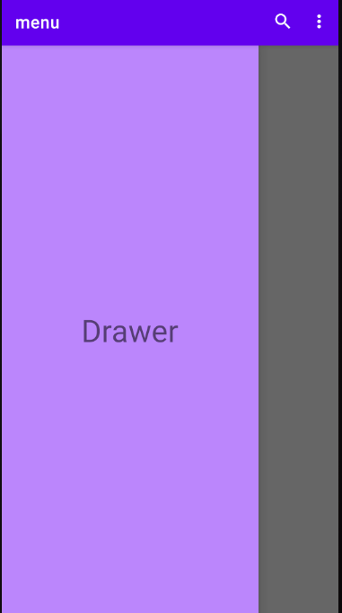 위 코드의 onCreateOptionsMenu 에서 기존의 메뉴를 주석처리하고 새로운 메뉴를 넣었습니다. 그리고 onOptionsItemSelected 의 when 내부에 item.itemId == R.id.btn_drawer 인 경우를 추가하여 이벤트를 구현했습니다. DrawerLayout 을 drawer 변수에 받고 drawer.openDrawer() 과 drawer.closeDrawer 를 통해 Drawer 가 열리고 닫히는 것을 제어합니다. 인자로는 Gravity.LEFT 를 넣었는데, xml 을 구성할 때 Drawer 가 될 레이아웃에 주었던 값과 동일한 값을 주어야 합니다.