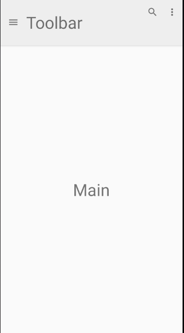 기존 코드에서 Toolbar 를 추가합니다. 이 때 사용할 툴바는 androidx 를 사용합니다. 이것으로 Toolbar 를 커스텀할 수 있습니다. 기본 방향은 가로 방향입니다. 이대로 실행해보면 딱 위에 보이는 저 화면이 나옵니다. 메뉴에 대한 내용은 날아가게 됩니다. manifests.xml 에서 설정하는 기본 툴바를 사용하지 않았기 때문에 코드상에서 툴바를 툴바라고 알려줘야 메뉴가 정상적으로 적용됩니다.