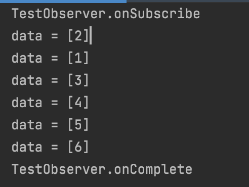 - onComplete : 데이터 발생이 끝나면 호출된다. onError 가 호출되면 onComplete 는 호출되지 않는다.