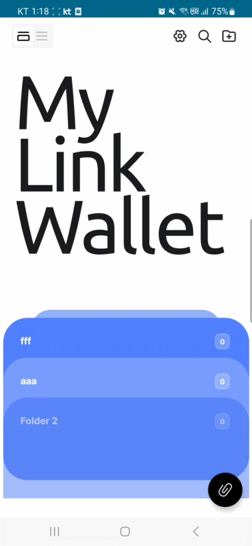 돌아가는 형태의 UI가 있고, 토글(?) 버튼을 누르면 펼쳐져서 한 번에 많은 폴더를 확인할 수 있다. 토글버튼을 눌렀을 때 확장되는 애니메이션을 제외하고는 사실 그래픽 요소이다.