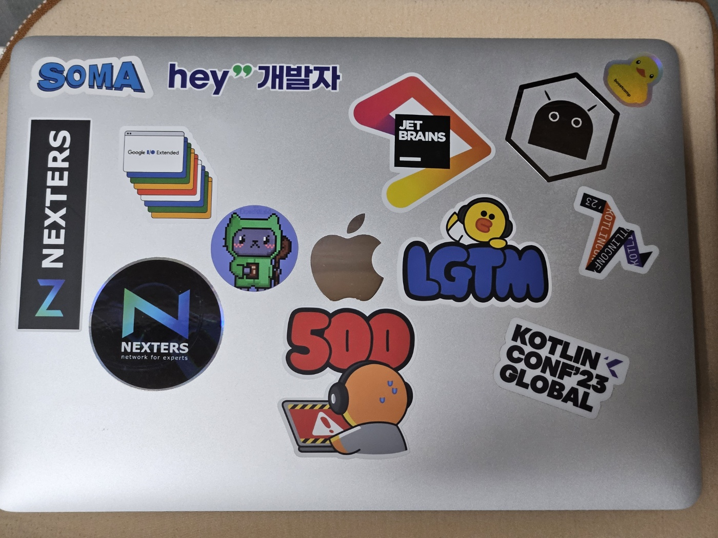 원래 3개월 전에는 위와 같은 상태였는데, 사회적 거리두기가 끝나고 안드로이드 컨퍼런스도 활발하게 열려서 스티커 모을 기회가 많았다. 규칙 없이 붙이다 보니 더 이상 붙일 공간이 없는 상태에 이르렀는데... 몇 개를 떼어 내고 아래 사진과 같이 마이그레이션 했다.