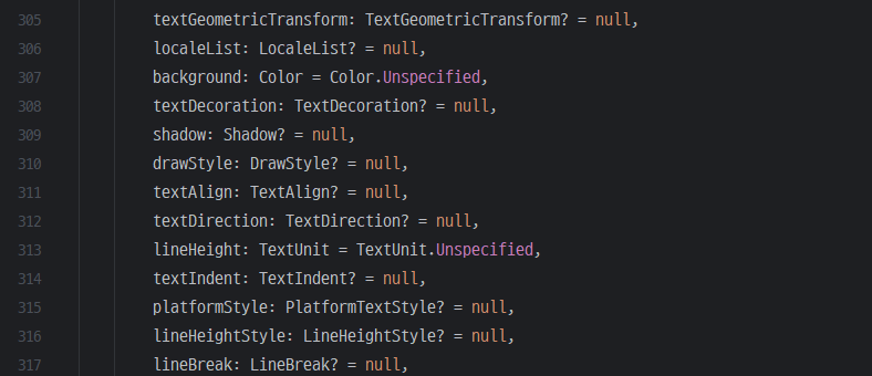 LineHeightStyle이라는 클래스를 살펴보면 trim이라는 파라미터가 존재하는데, default 값이 Trim.Both로 설정되어 있다. 즉, lineHeight만 설정하면 행간은 유지되지만, 첫 줄의 top 여백과 마지막 줄 bottom 여백이 잘리게 된다. 그 결과 텍스트가 포함된 컴포넌트에서 실제 디자인과 여백 차이가 발생하게 된다. trim 파라미터에 Trim.None을 전달하여 해결할 수 있다.