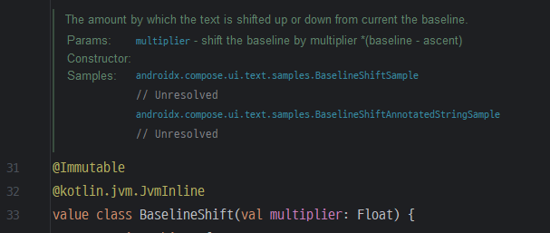주석 설명을 읽어보면 multiplier * (baseline - ascent) 만큼 이동시킨다고 나와있다. multiplyer 값을 설정하여 텍스트를 정렬할 수 있다고 이해하면 된다. 다만, 같은 폰트 사이즈에 따라 다른 값을 적용해야 더 정확한 보정이 가능하다.