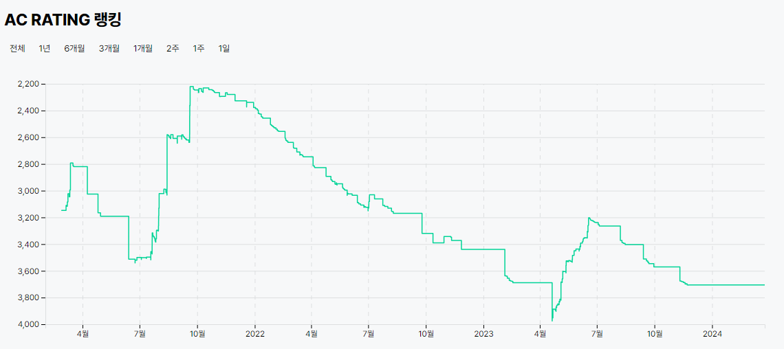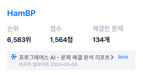 2023년 4월부터 1일 1문제를 풀다가 넥스터즈와 부스트캠프를 시작하면서 랭킹이 떨어지는 모습. 이번 코딩테스트에는 백준을 이용하지 않았다.