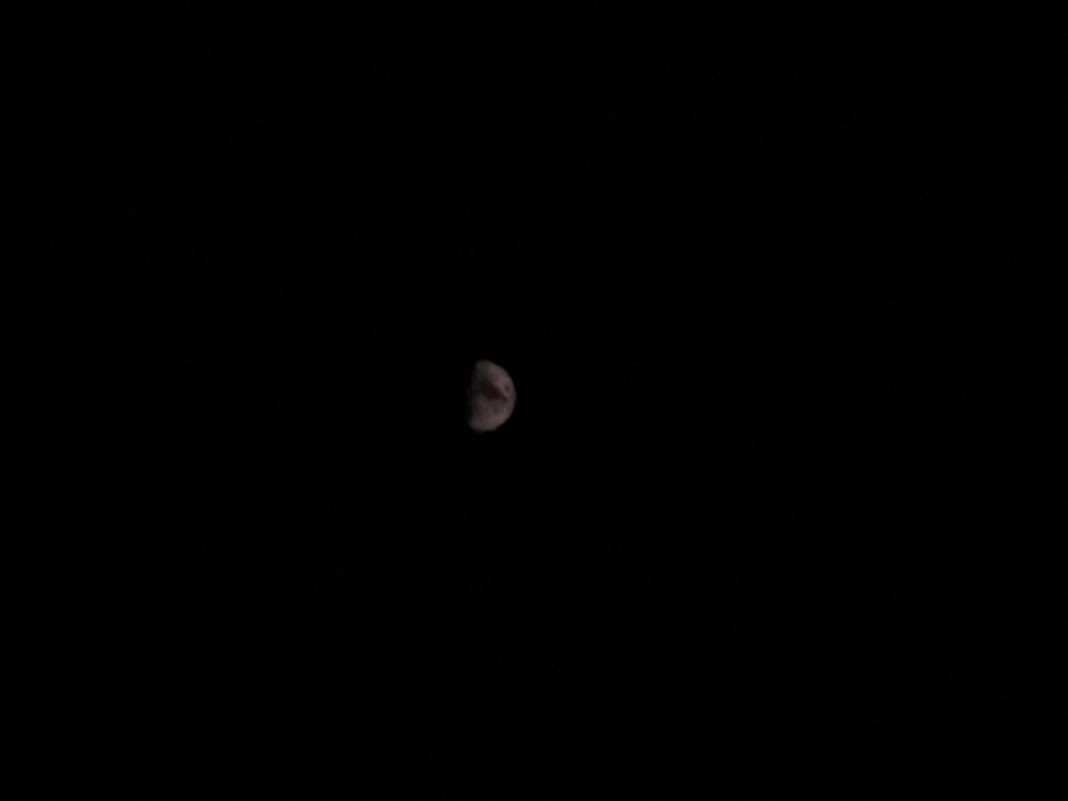 처음에는 야간 촬영이다 보니 iso를 높이고 셔터 속도를 낮추고 촬영해야 하는 줄 알았다. 그런데 밤하늘을 찍는 것이 아닌, 달을 찍는 것이기 때문에 어두운 것이 아니라 밝은 것을 찍을 때처럼 촬영해야 한다. iso를 낮추고 셔터 속도를 빠르게 해서 찍었다. 반대로 하면 빛 덩어리밖에 안 보인다. 이렇게 촬영하면, 어둡게나마 보였던 달 주변은 아예 보이지 않게 된다. (밝은 것을 기준으로 촬영했기 때문)