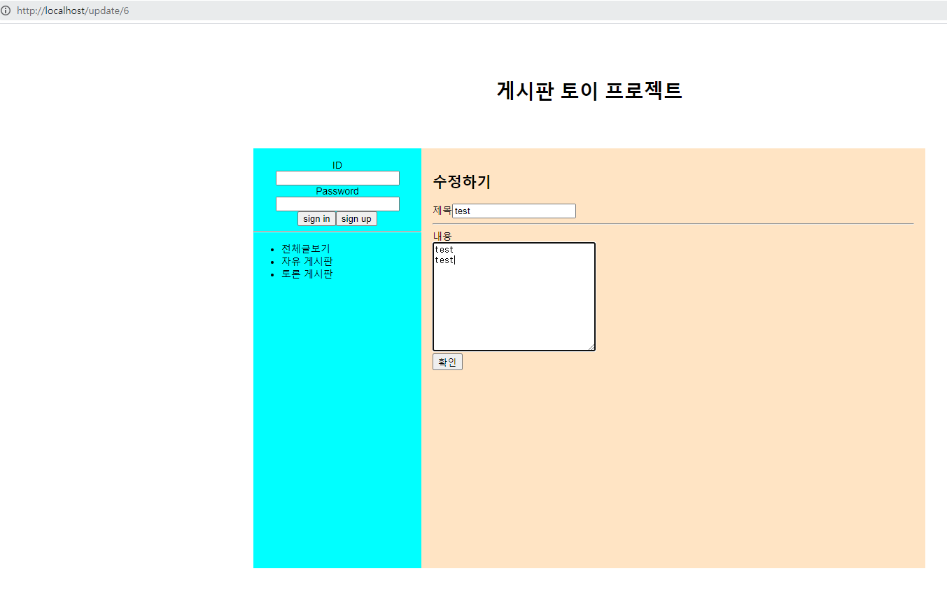 CREATE에서 코드가 추가된 게 update이기 때문에 create는 캡처하지 않았다. 게시판에서 CRUD 요청을 하면 데이터베이스에 저장된다. 데이터베이스는 mysql을 사용하고 있다.