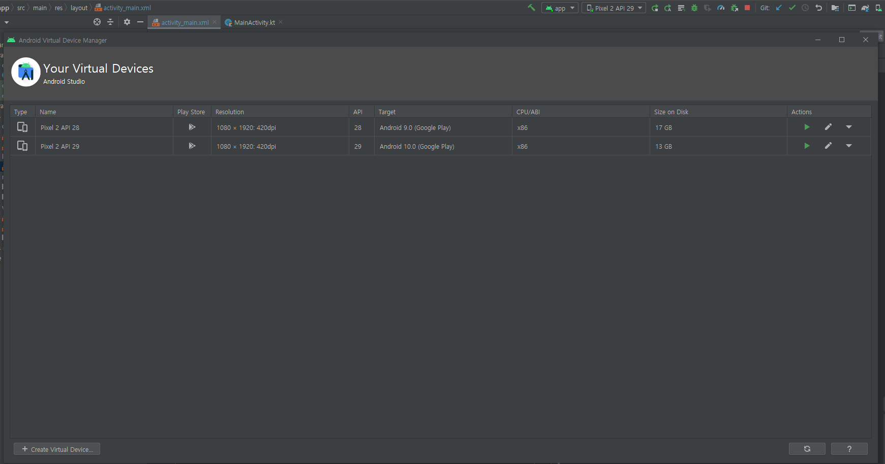 저는 에뮬레이터라는 가상 기기를 사용해 화면을 띄웠지만, 실제 안드로이드 기기로도 가능합니다.