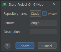 위 메뉴를 선택하면 깃허브 리포지토리를 만드는 창이 나옵니다. 리포지토리 이름과 설명을 적을 수 있으면 딱히 건드리지 않아도 됩니다.