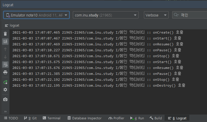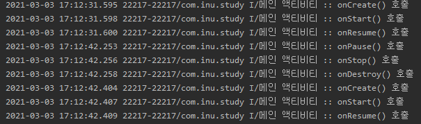 각각의 상황에 대해서 어떠한 메서드가 호출되는지만 간단하게 이해하고 넘어가시면 됩니다. 알아둬야 할 것은 onPause(), onStop() 메서드의 경우 액티비티의 데이터가 유지되고 onDestroy() 메서드는 완전히 종료되기 때문에 데이터가 소실된다는 것입니다. 그런데 여기서 중요한 사실이 있습니다.