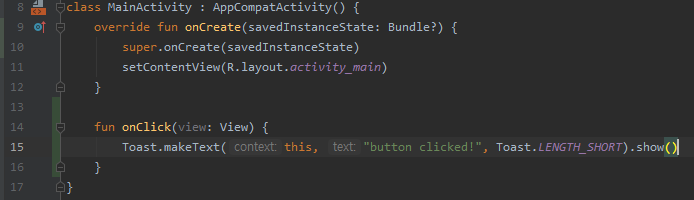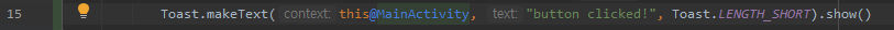 Toast.makeText(this, "button clicked!", Toast.LENGTH_SHORT).show()