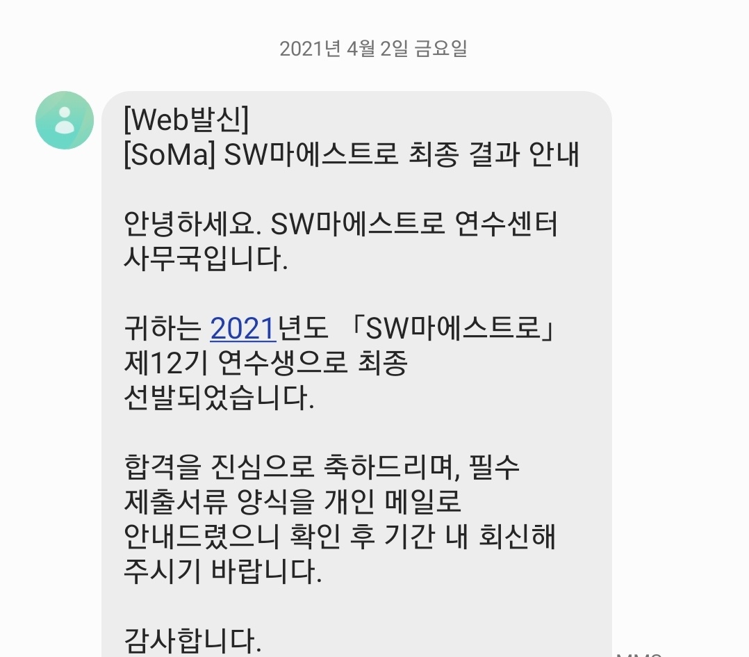 | SW마에스트로 12기 면접, 최종합격 후기 및 연수 중간 후기 (2) | 2021.06.20 |